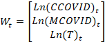 é o logaritmo natural de casos da Covid-19; MCOVID-19 é o logaritmo natural de
